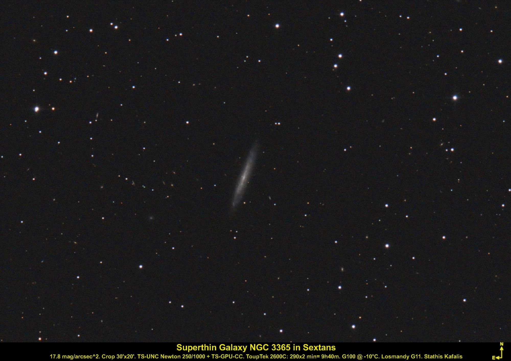 NGC 3365 im Sextans RA: 10h 46m 12s Dec: +01° 48m 46s 5,0'x0,7' 12,6 mag Keine visuelle Beobachtung |