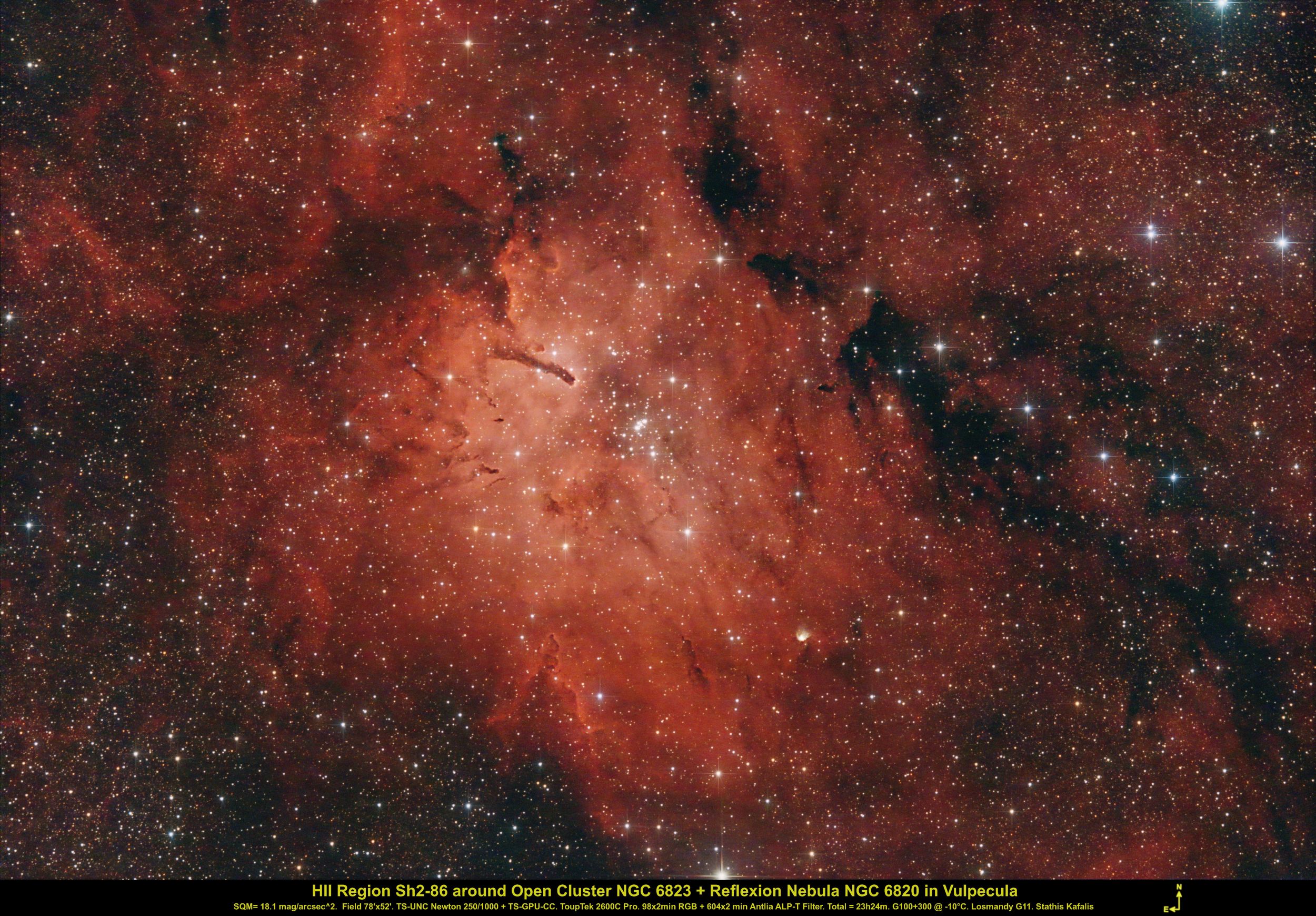 HII Region Sh2-86 um offenen Sternhaufen NGC 6823+ Reflexionsnebel NGC 6820 in Vulpeculapa