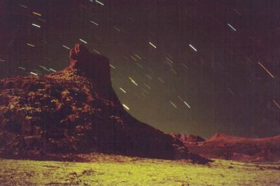 Valle de la Lunar Atacama bei Mondlicht. Chile, Nov. 1994 50mm 1:1,7 + Pentax K1000. Ca. 15 Minuten belichtet auf Ektachrome 1600 |